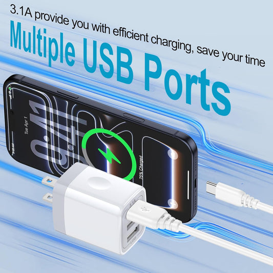 USB Charging Plug, Wall Charger Adapter, 3Pack Universal Travel 3.1A 3Muti Port Fast Charging Block Compatible with Iphone 15 14 13 12 SE 11 Xs Pro,Samsung Galaxy S23 S22 S21 S20 Ultra, Google